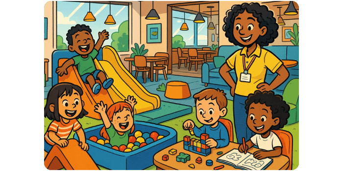 - Atualize a equipe sobre lotação: Se perceber que a área kids está ficando cheia ou tem crianças agitadas, avise o gerente ou líder para possível suporte extra.