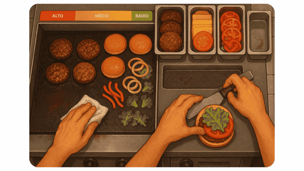 Antes mesmo de ligar a chapa, o chapeiro precisa deixar tudo pronto. Essa etapa se chama mise en place e faz toda a diferença para um serviço rápido e organizado.